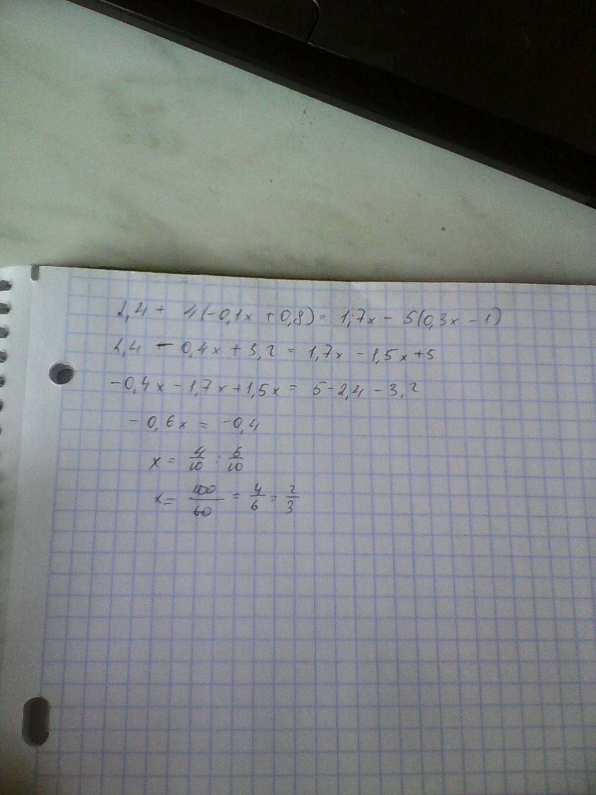 2.4+4(-0.1х+0.8)=1.7-5(0.3х-1);