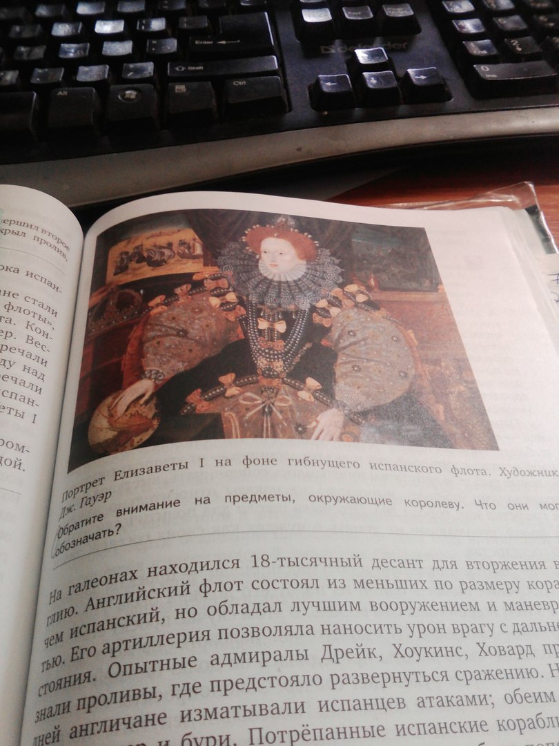 Обратите внимание на предметы, окружающие королеву. Что они могут обозначать?