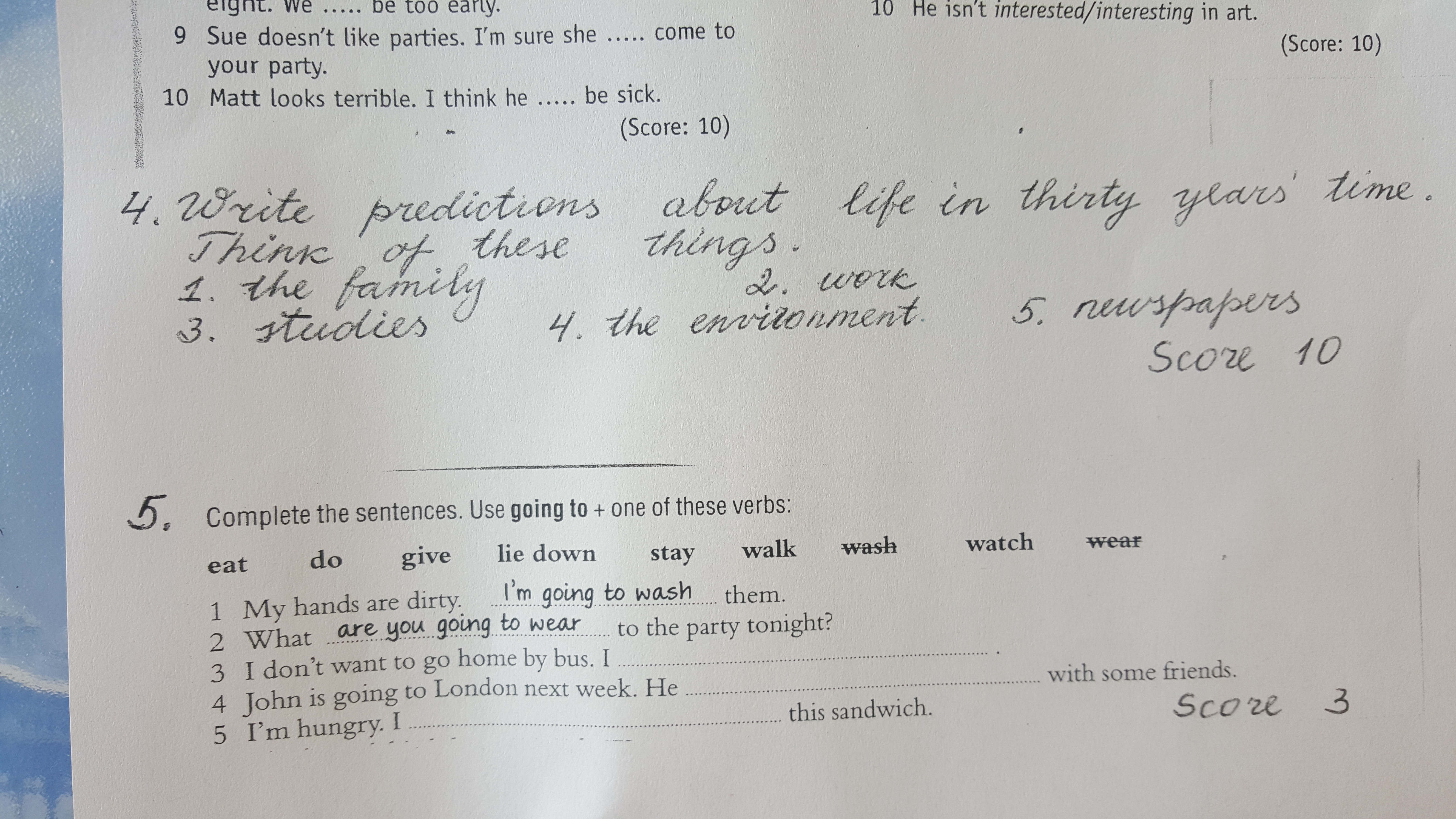 упражнение 5 : 3 - am going to walk, 4 - is going to stay, 5 - am going to eat. задания наподобие 4 я не выполняю.