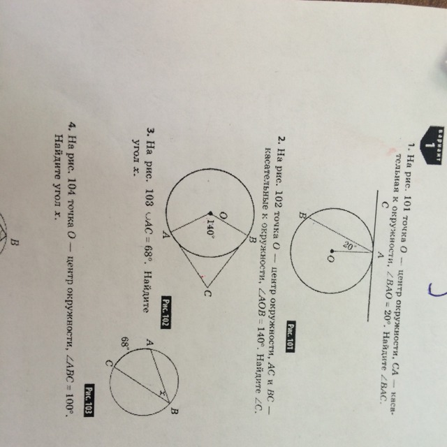 3. На рис 103 дуга ac = 68 градусов. Найдите угол х