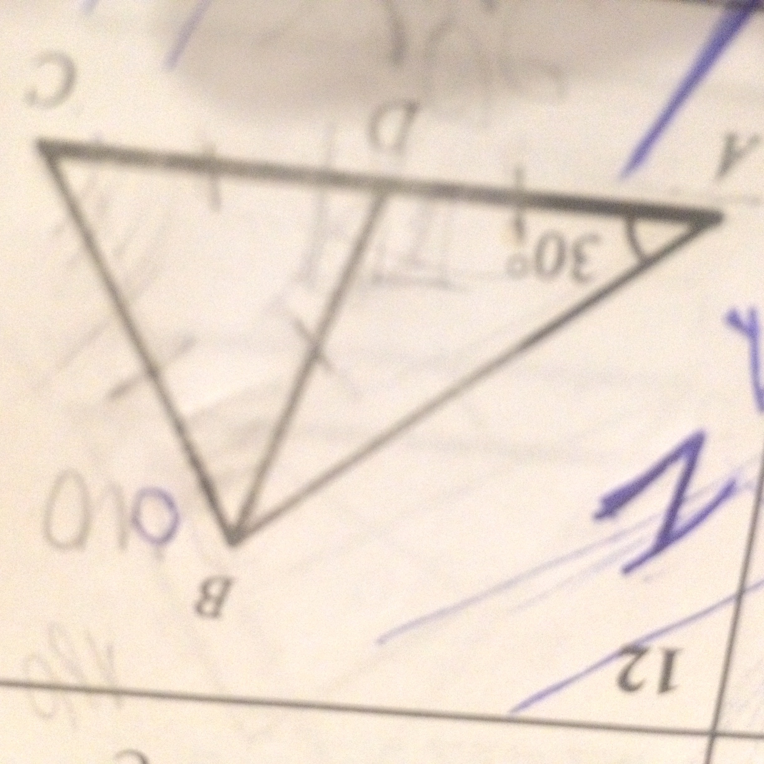 по теореме сумма углов треугольника равна 180° => ∠ADB=180° - 30° - 30°= 120°