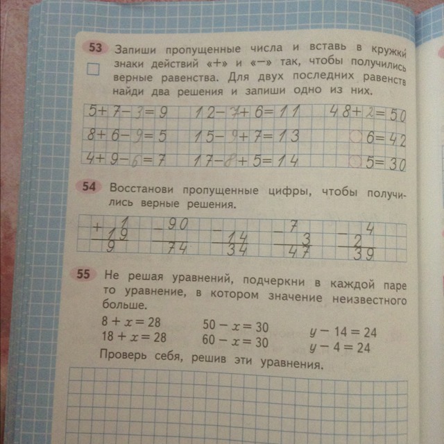 В 53 номере в двух последних примерах можно поставить знак "-", а можно "+":
