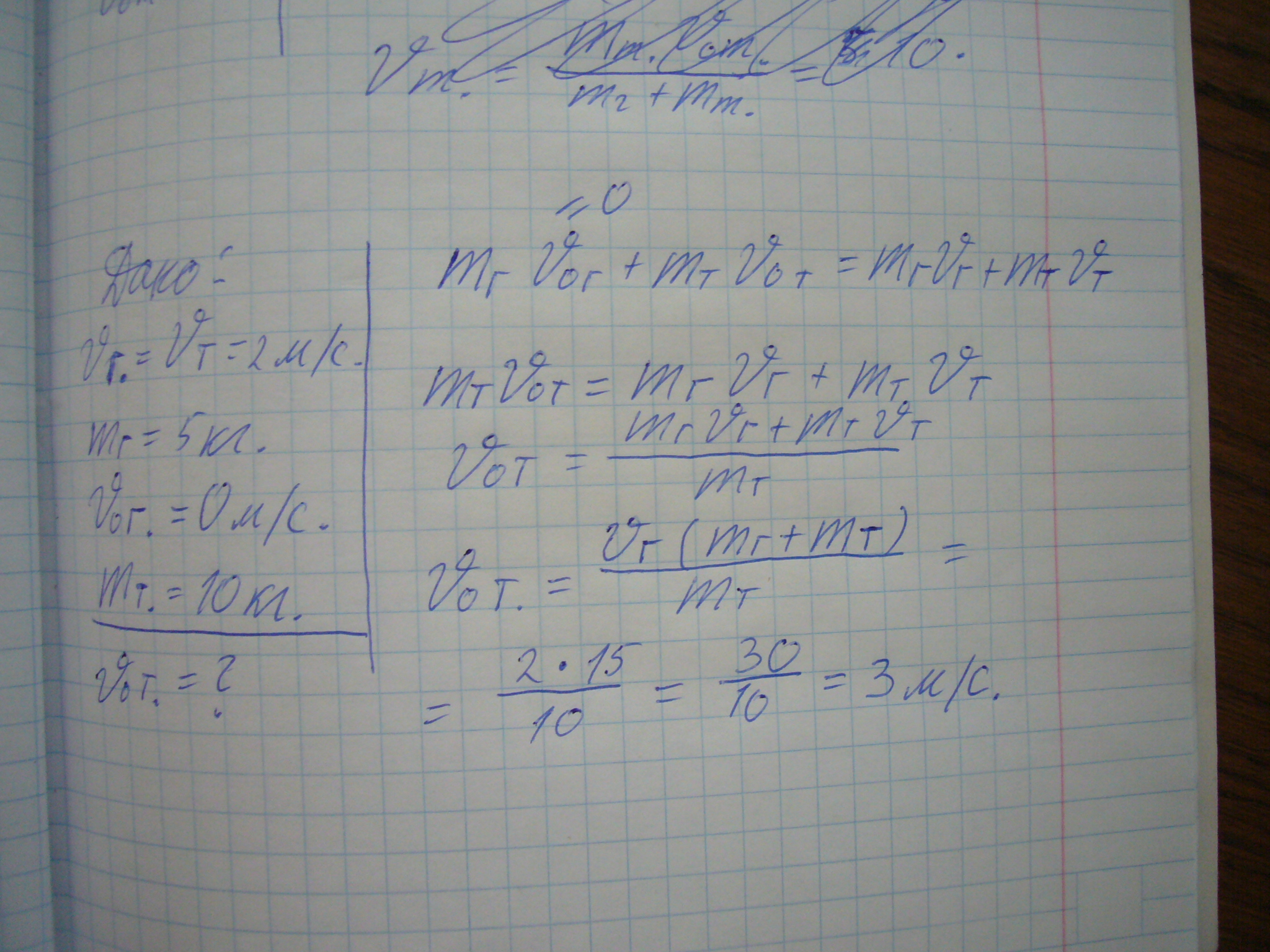 а тележку массой 10 кг сверху падает груз массой 5 кг после того как груз упал и перестал скользить по тележке,тележка с грузом двигалась со скоростью 2 м /с. Скорость тележки до падения груза была