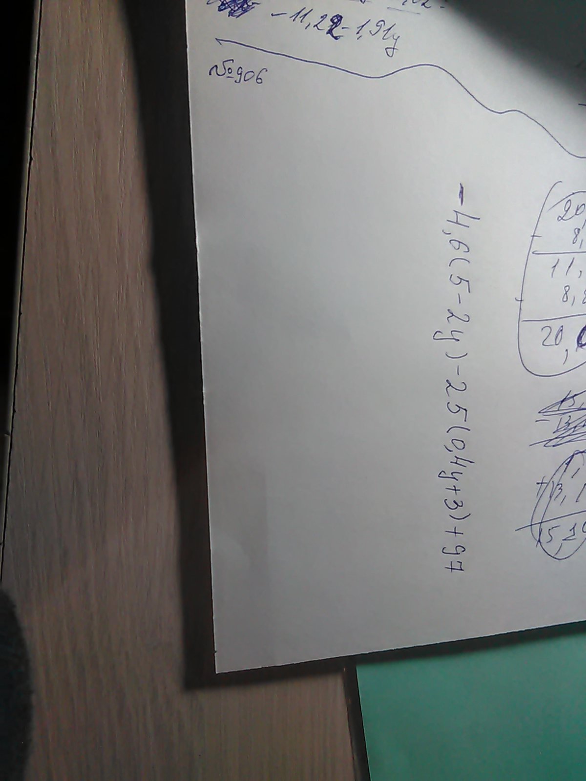 -4,6(5-2у)-25(0,4у+3)=97