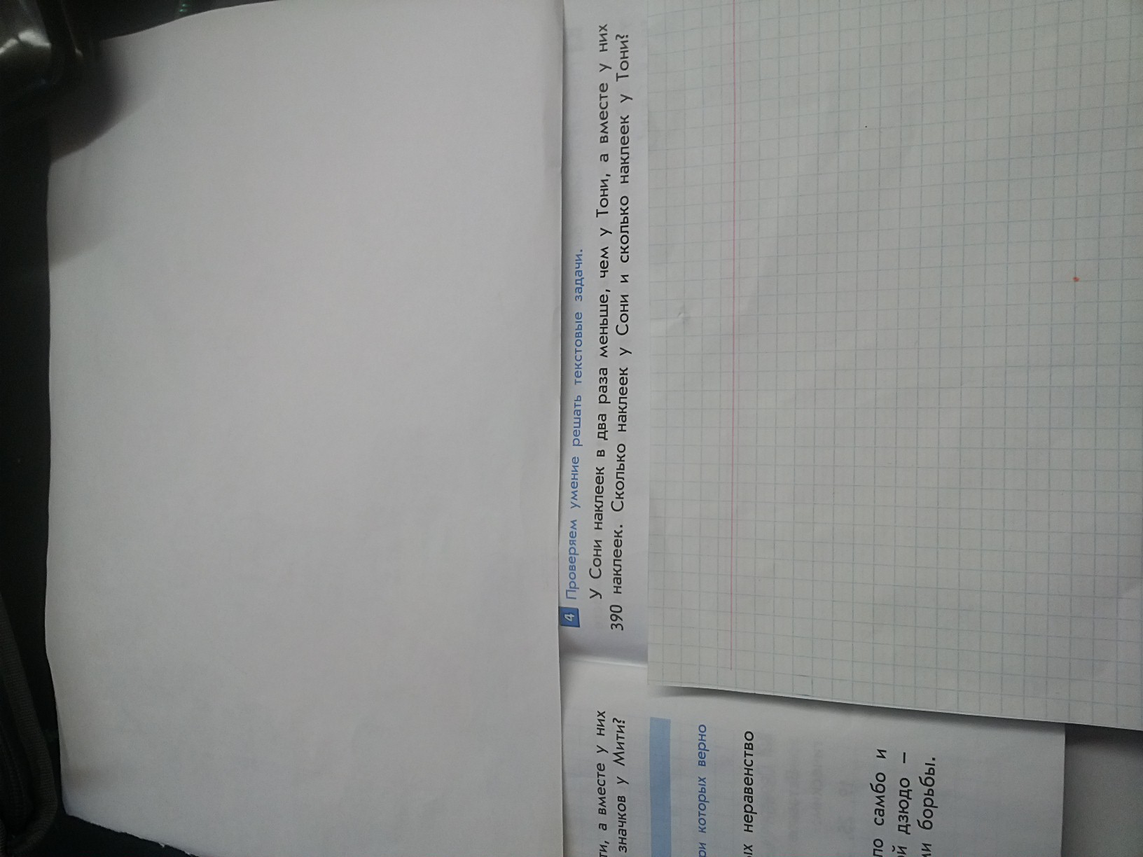 Ответ:у Сони 130 наклеек, а у Тони 260 наклеек