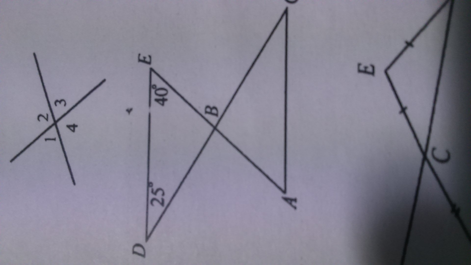 на рисунке точка B является серединой отрезков AE и CD,угол BDE =25°,угол BED=40°. Докажите,что треугольник ABC= треугольнику EBD. Найдите угол А в труегольнике ABC. Запишите решение и ответ