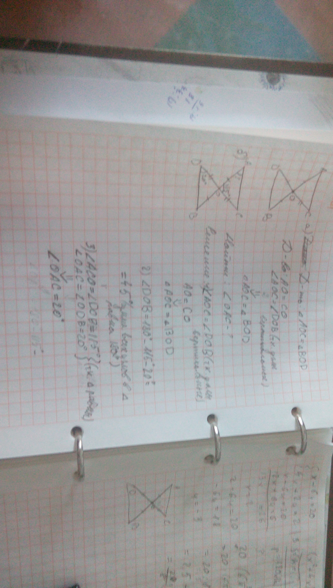 1) угол АОС= углу ДОВ (как вертикальные углы)