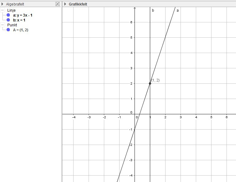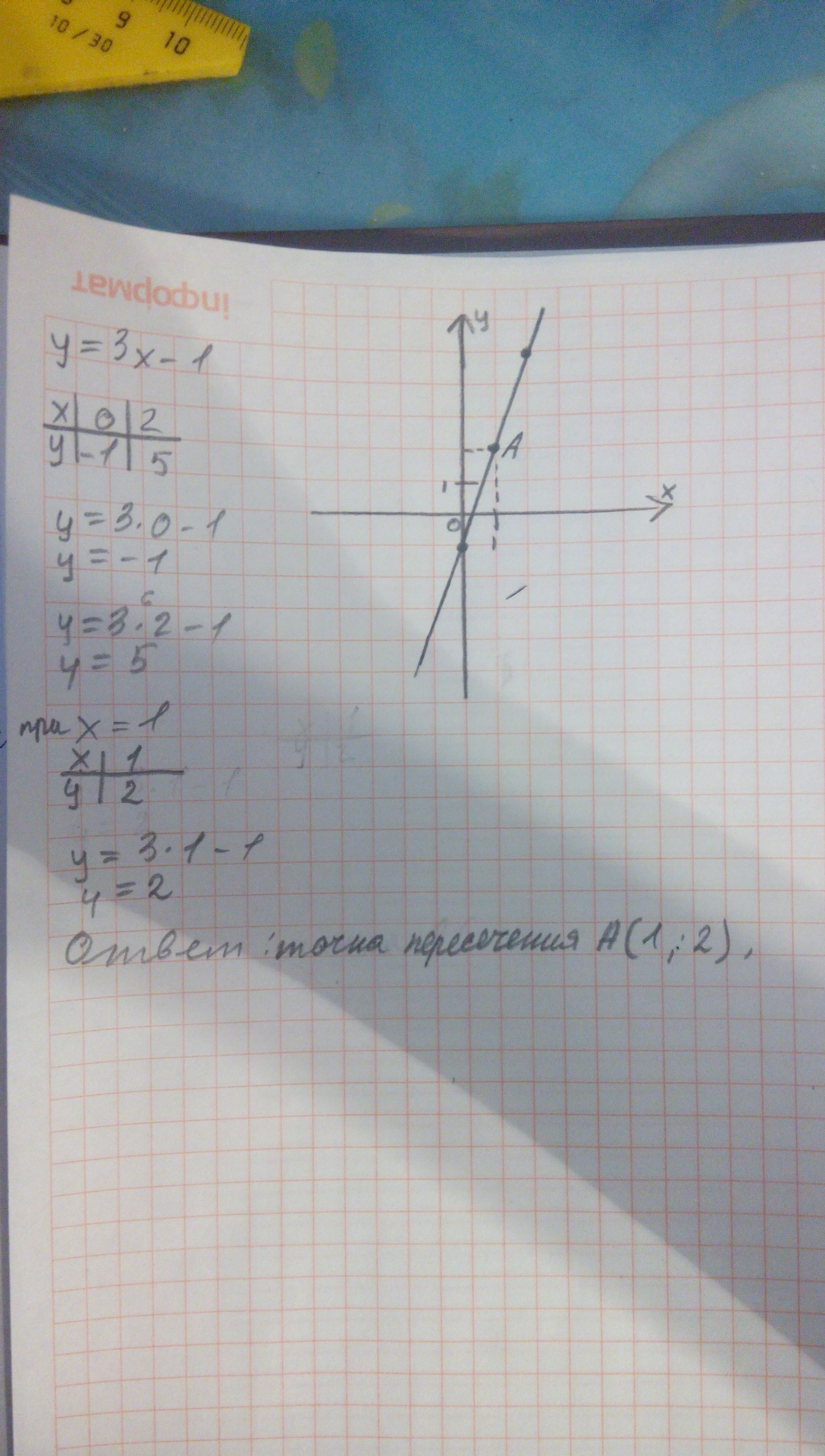 Постройте график функции y=3x-1. По графику найдите точку пересечения при значениях данной прямой с прямой заданной уравнением X=1