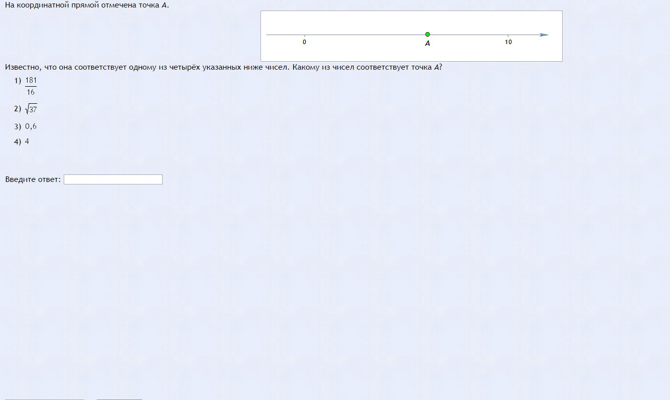 Судя по рисунку, можно предположить что точка А больше 5, но меньше 10. Последние 2 варианта сразу отпадают, первый вариант равняется 11.3, и тоже отпадает. Значит правильным будет второй вариант. Ближайший корень к нашему - корень из 36, а он равняется 6, так что вполне подходит под условия.