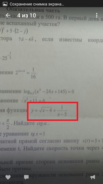 можно ответ записать так: x принадлежит [4;5)U(5; бесконечности)