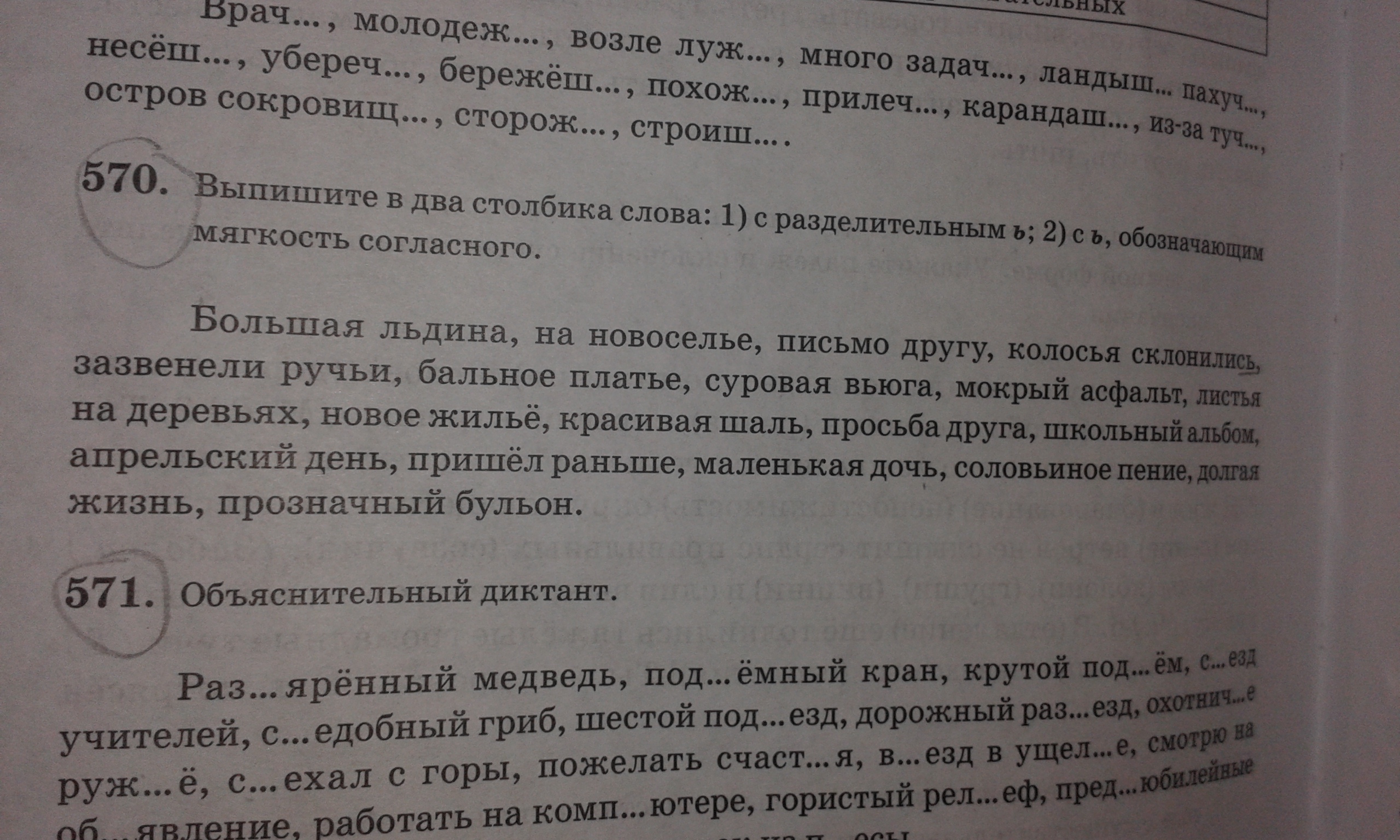 1)На новоселье, колосья склонились,платье,суровая вьюга,листья на деревьях,новое жильё,соловьиное пение,прозрачный бульон,ручьи,альбом.