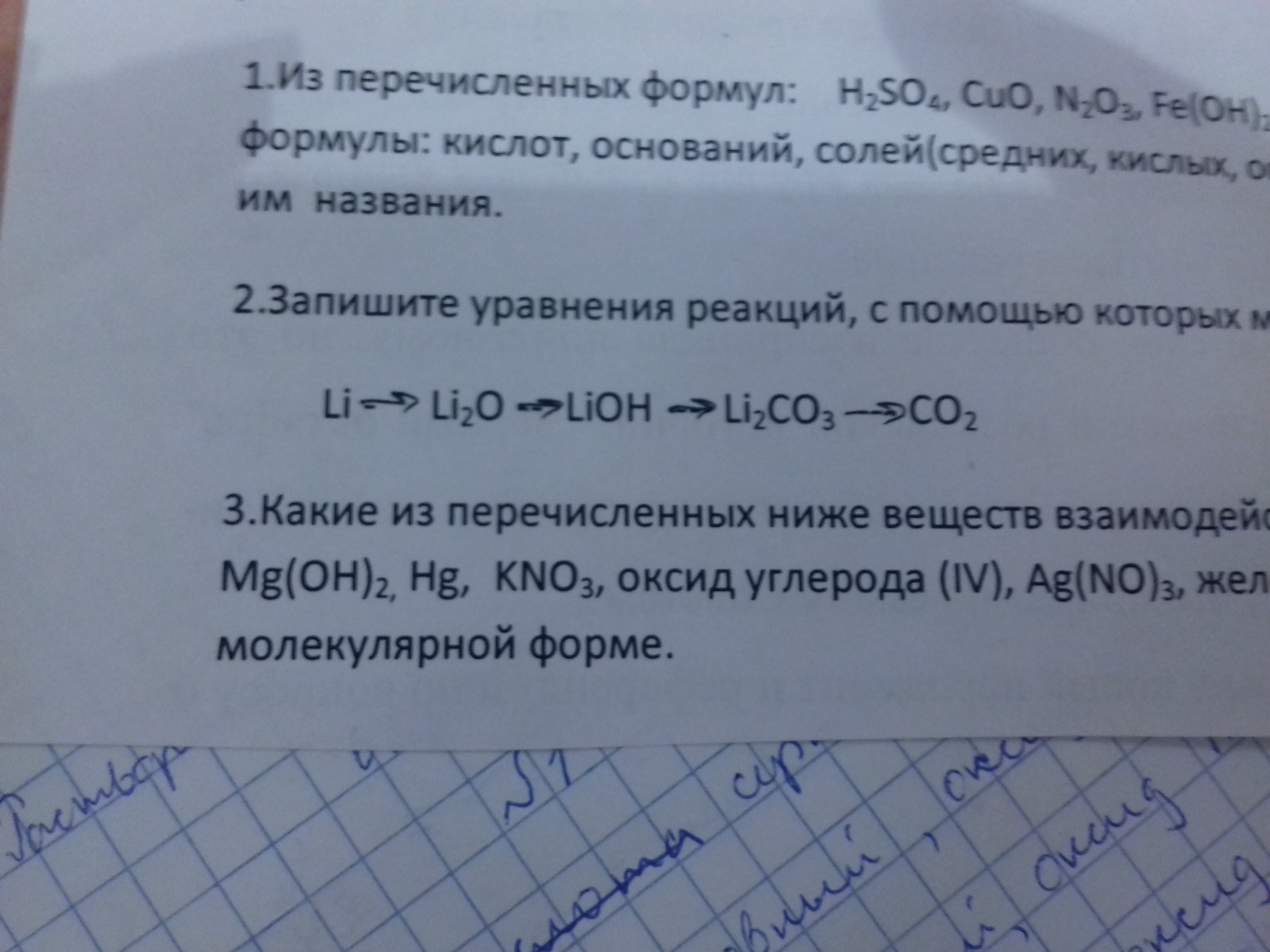 3) 2LiOH + CO2 = Li2CO3 + H2O
