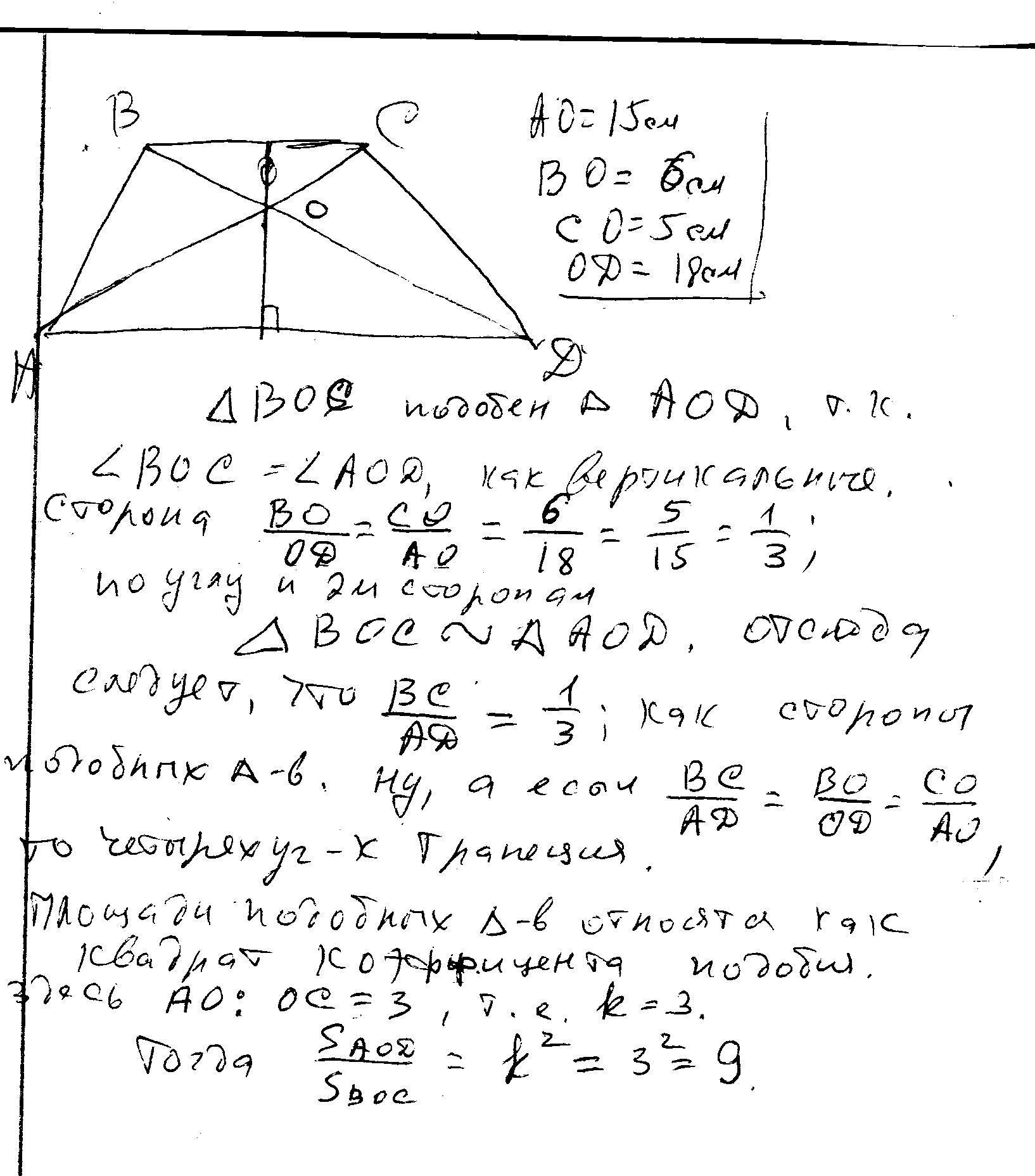 Отрезки АС и ВД пересекаются в точке О ,причём АО 15 см, ВО 6см ,СО 5см,ДО 18см