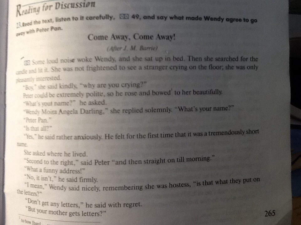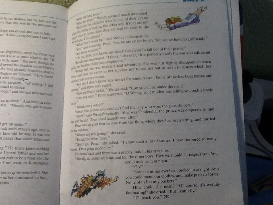 8 Wendy knew a lot of stories and Peter wanted her to tell these stories to the other boys.