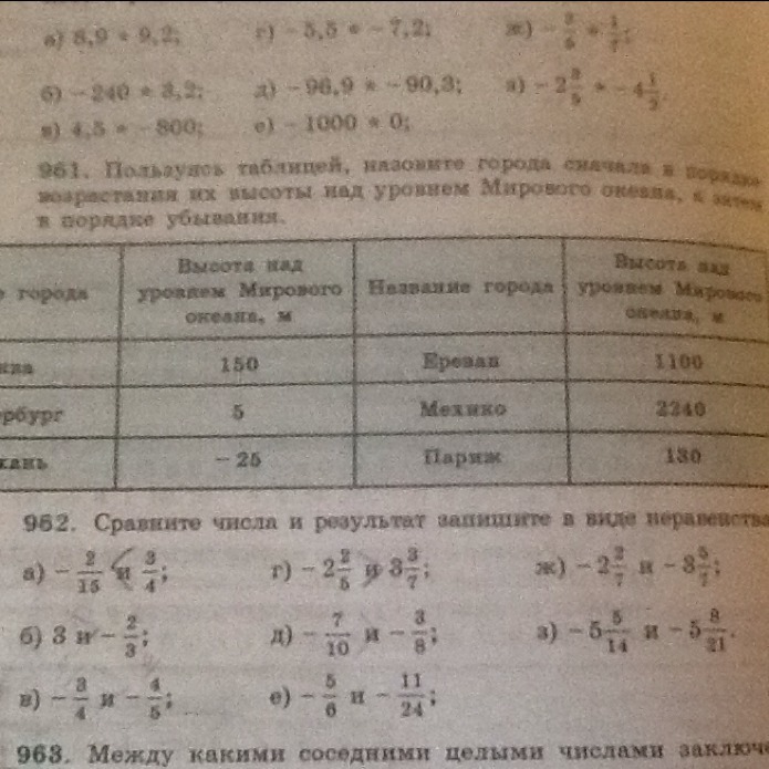 Пользуясь таблицей, назовите города сначала в порядке возрастания их высоты над уровнем Мирового океана, а затем в порядке убывания.