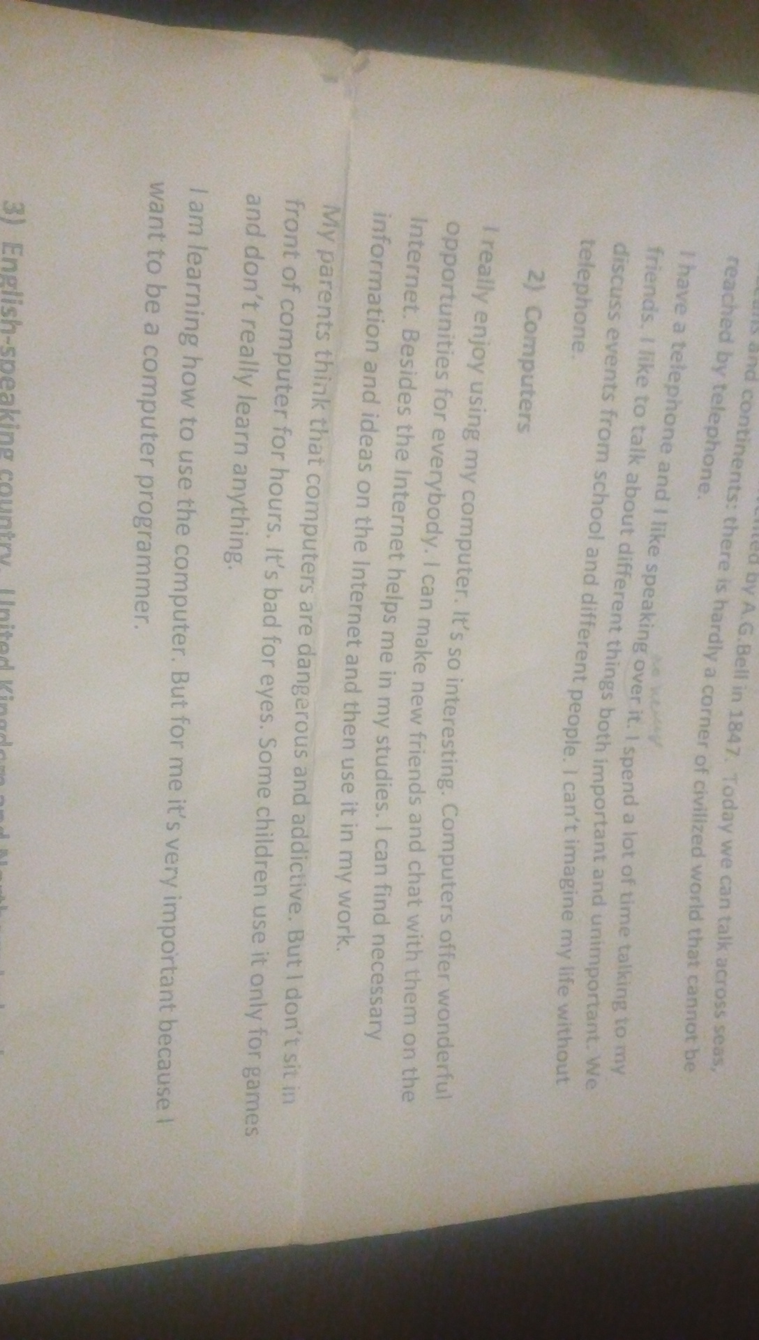 Мне действительно нравится использовать мой компьютер это так интересно в компьютере гора возможностей, чудо для всех, я могу сделать новый чат с ними в Интернете. Помимо интернет-друзей и информации помогает мне в моих исследованиях. может найти необходимые и идеи в Интернете, а затем использовать его в своей работе. Мои родители считают, что компьютеры опасны и привыкание. Но не сидеть перед компьютером в течение нескольких часов. плохо для глаз Некоторые дети используют его только для игр это и на самом деле не узнать что-нибудь. учусь, как использовать компьютер. для меня это очень важно, потому что я хочу быть программистом.