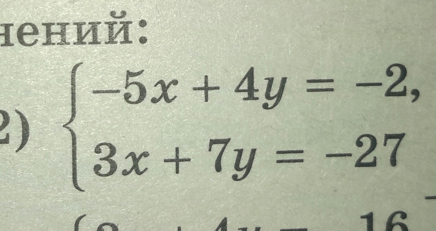 Умножь первое уравнение (обе его части) на 3, а второе также умножь, но на 5. Далее сложи правые и левые части уравнений системы и избавишься от х, останутся только у. Если сделаешь все правильно, то получишь 47у=-141 => у=-3. Далее находишь х методом подстановки.