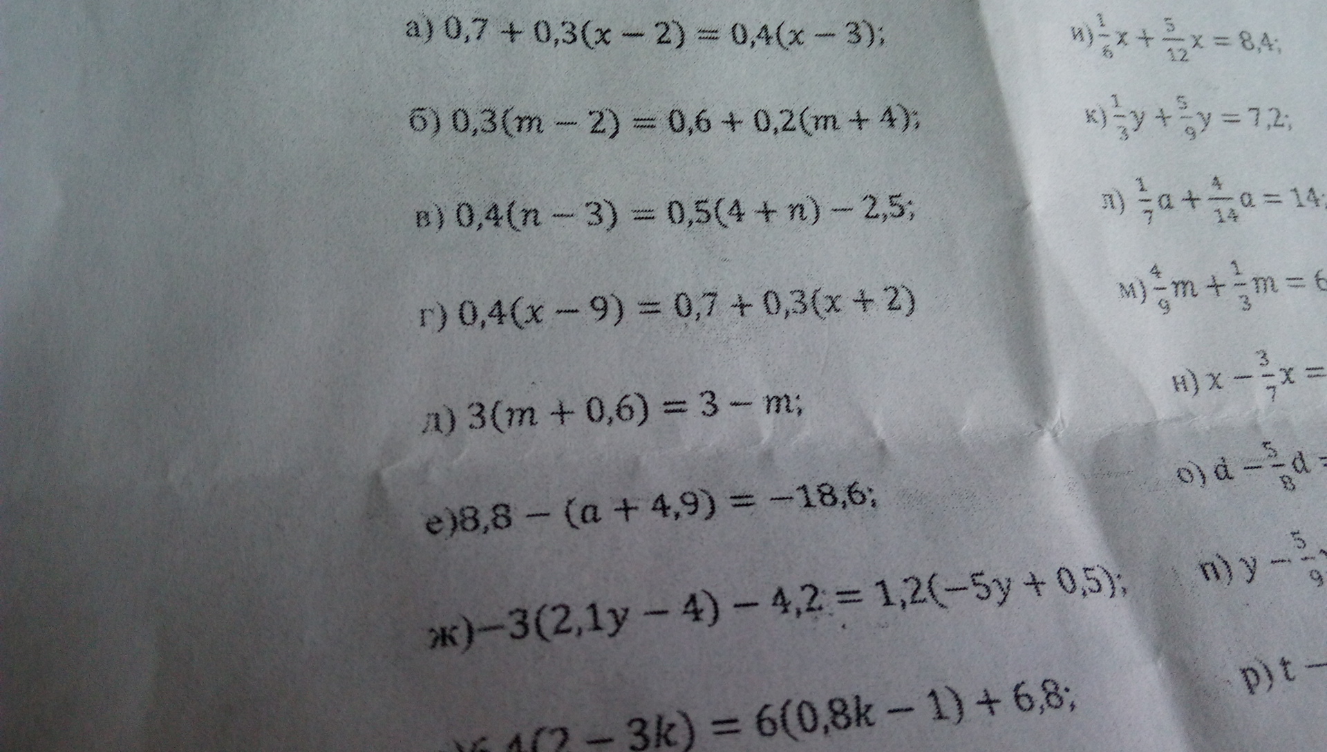 Г) 0,4х-3,6=0,7+0,3х+0,6;