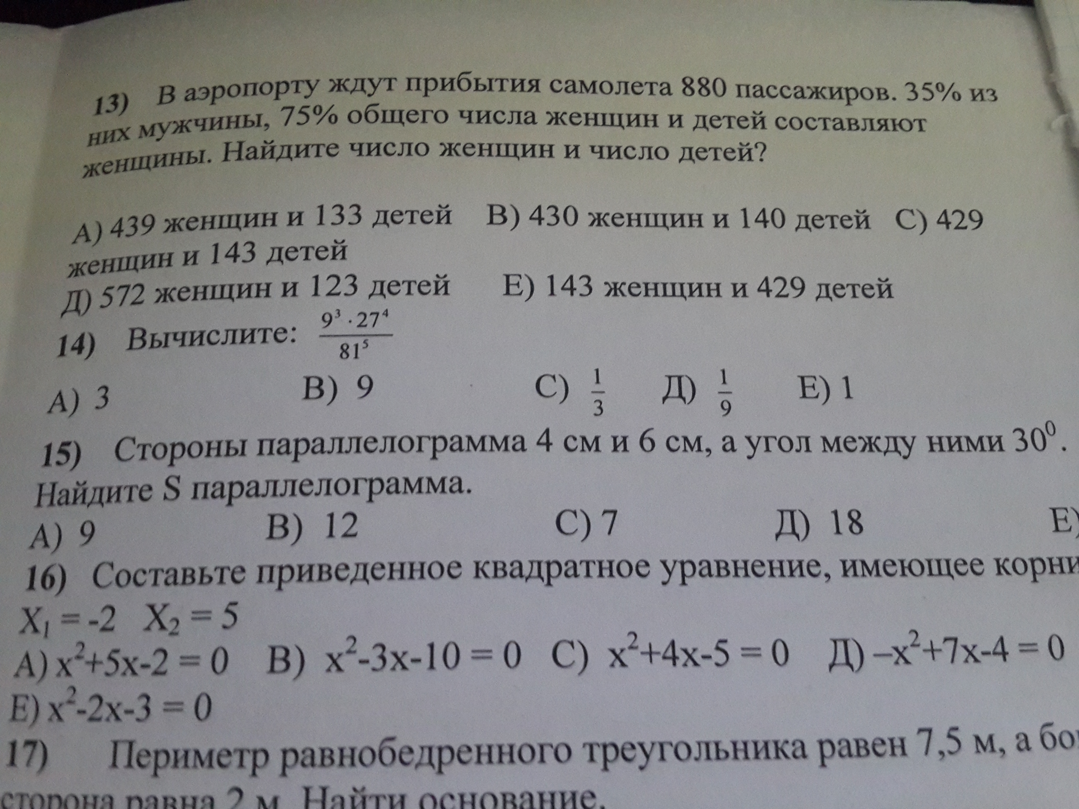 3) S (паралл)=a*b*sinλ=4*6*0,5=12