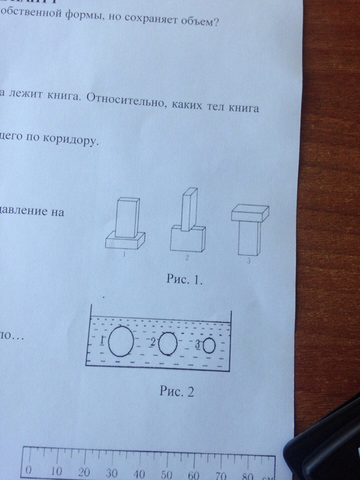На каком из 3 вариантов расположения тел, верхнее тело оказывает наименьшее давление на нижнее?(рис. 1)