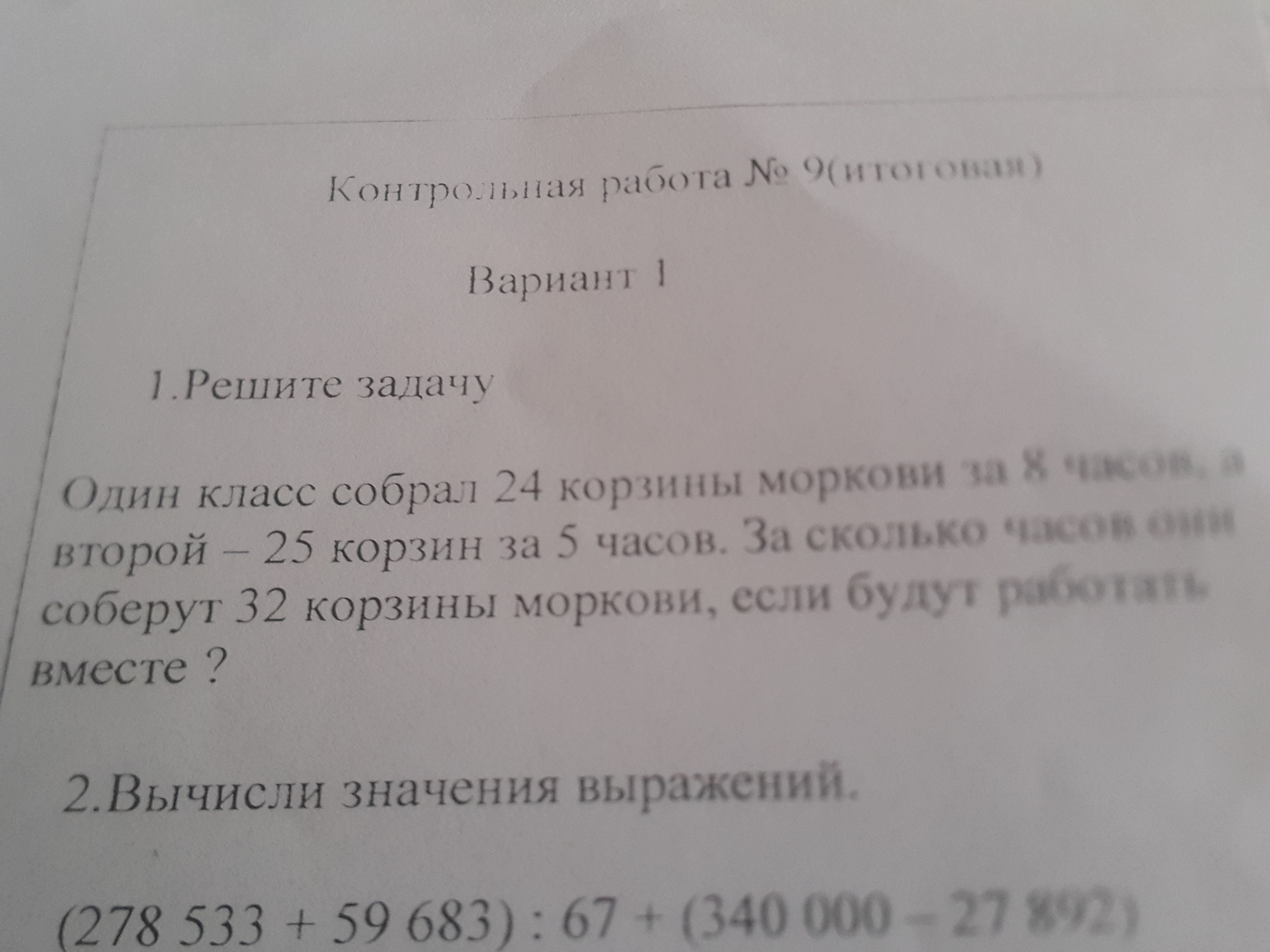 Один класс - 24к за 8часов, следовательно по три корзины в час. Второй - 25к за 5часов, следовательно по пять корзин в час. 5+3=8 (оба класса в час) 32:8=6(часов потратят оба класса на 32корзины)