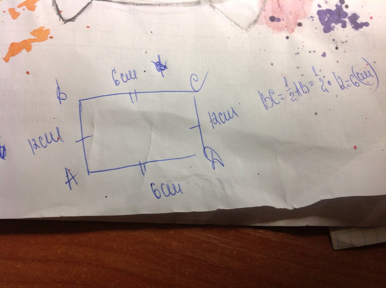 дано: прямокутник АВСD, АВ=СD=12см. ВС= 1/2*12=6 (cм)