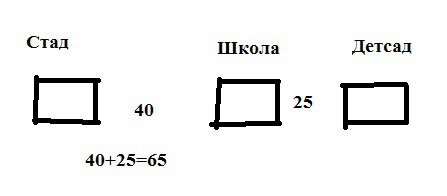 Расстояние от школы до до стадиона 40 метров. Школа находится на 25 метров ближе к стадиону,чем детский сад. Сколько метров от детского сада до стадиона?