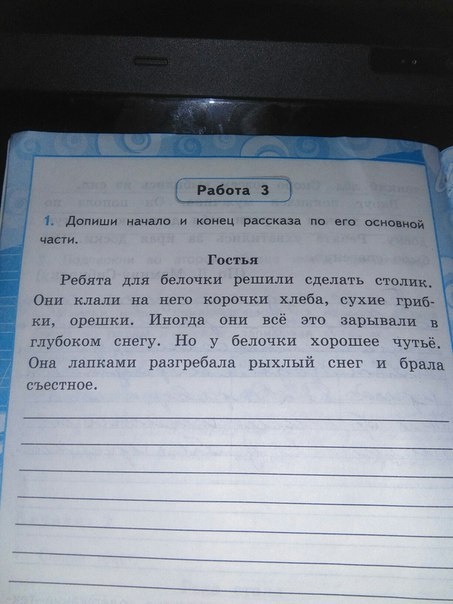 В лесу жила была белочка,очень красивая. Ребята захотели ее покормить, но незнали куда положить для белочки корм. Ребята для белочка решили построить столик. они клали на него корочку хлеба, сухие Грибки, орешки. иногда они все это зарывали в глубоком снегу. но у белочки хорошее чутье.Она лапками разгребала рыхлый снег и брала съестное. Ребята каждый день приходили кормить белочку.