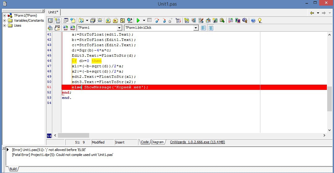 Помогите пожалуйста! Делфи. Выдаёт ошибку в конце. (else)