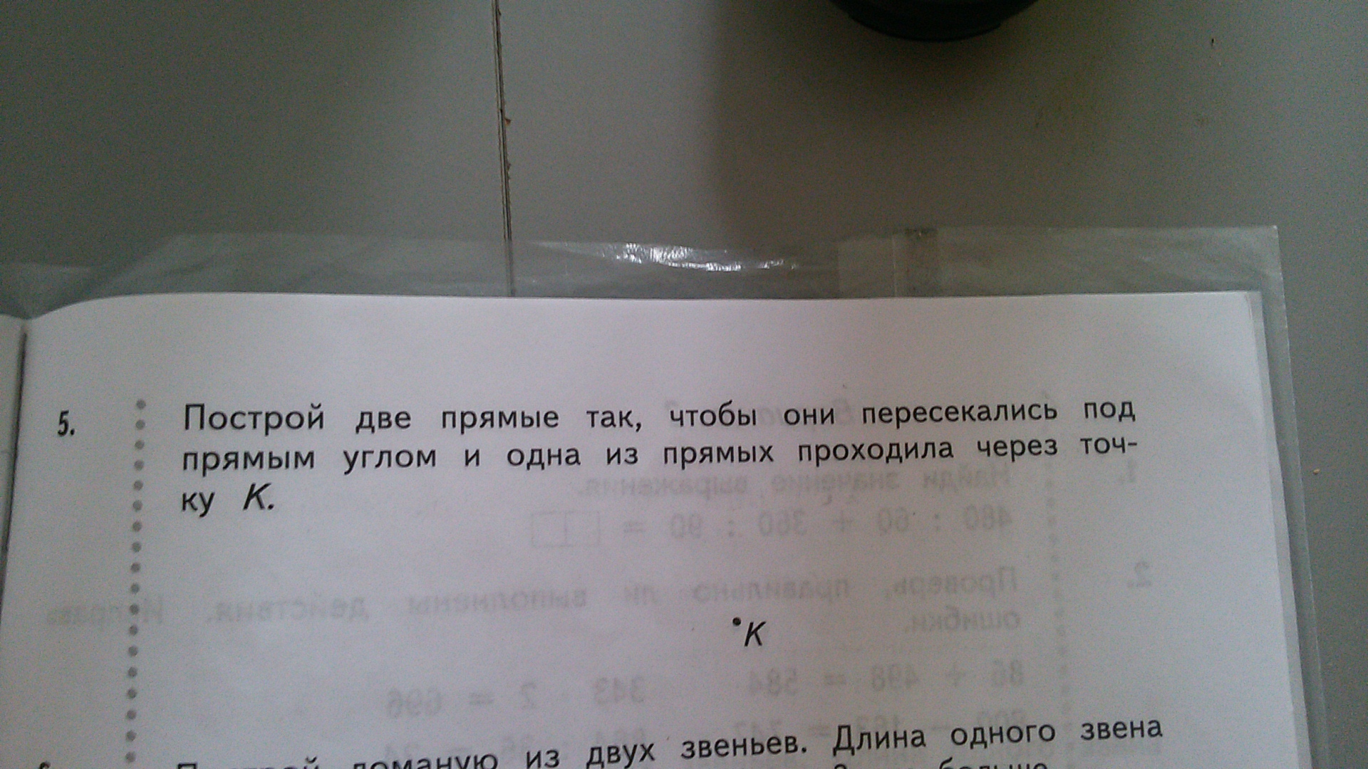 Начерти прямую которая проходит через товку К , дальше приложи угольник , так чтобы одна сторона совпала с этой линиеей , и проведи по другой стороне линию