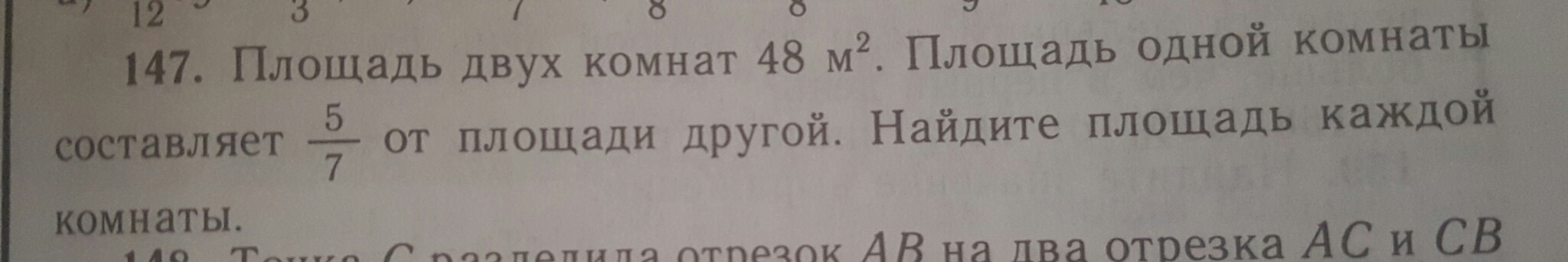 1)48/(7+5)=4м 2)4×5=20м(площадь 1-ой) 3)4×7=28м(площадь 2-ой)