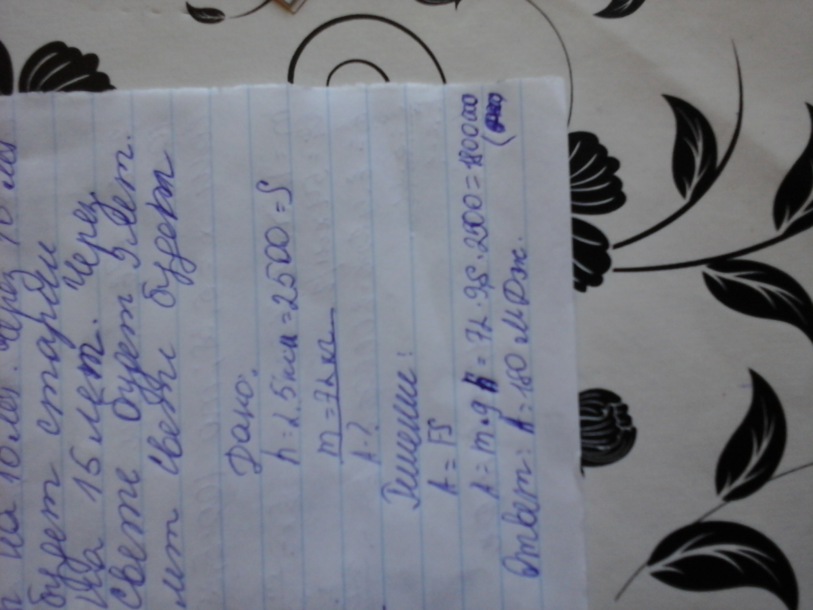 альпинист поднялся в горах на высоту 2,5 км. Определите механическую работу, свершенную альпинистом при подъеме, если его масса вместе со снаряжением равна 72 кг.