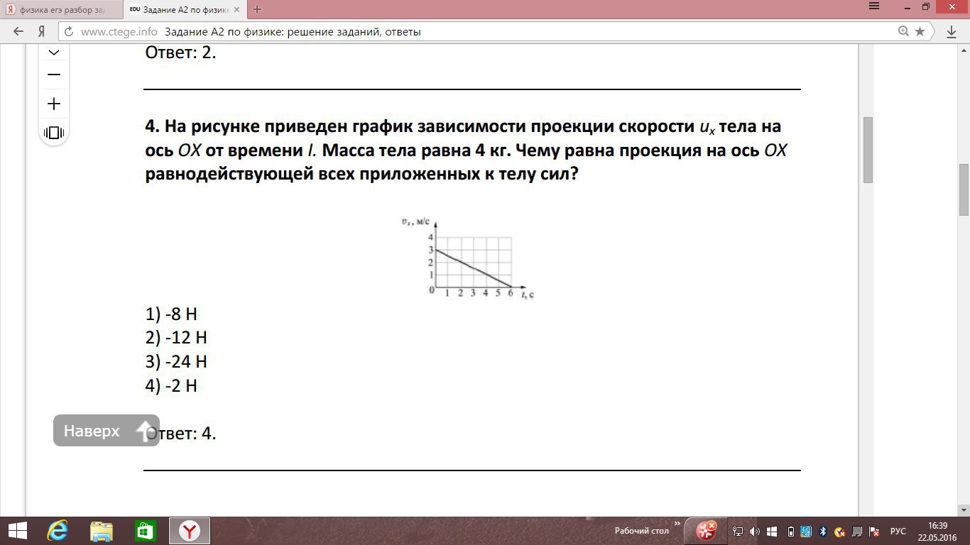 равнодействующая равна R=ma,m=4кг(дано) найдем ускорение a=V2-V2/t=0-3/6=-0.5м/с² считаем R=4*(-0.5)=-2H