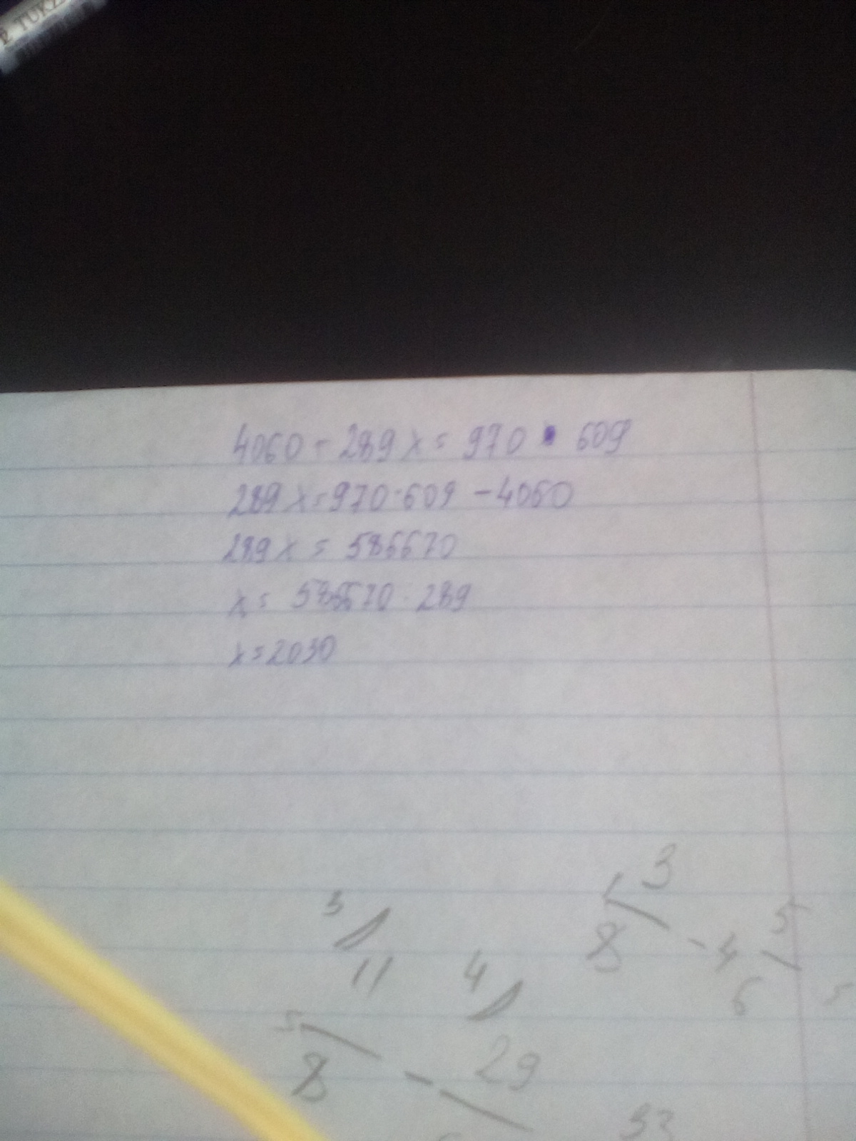 4060+289х=970*609,289х=970*609-4060,289х=586670,х=586670:289,х=2030