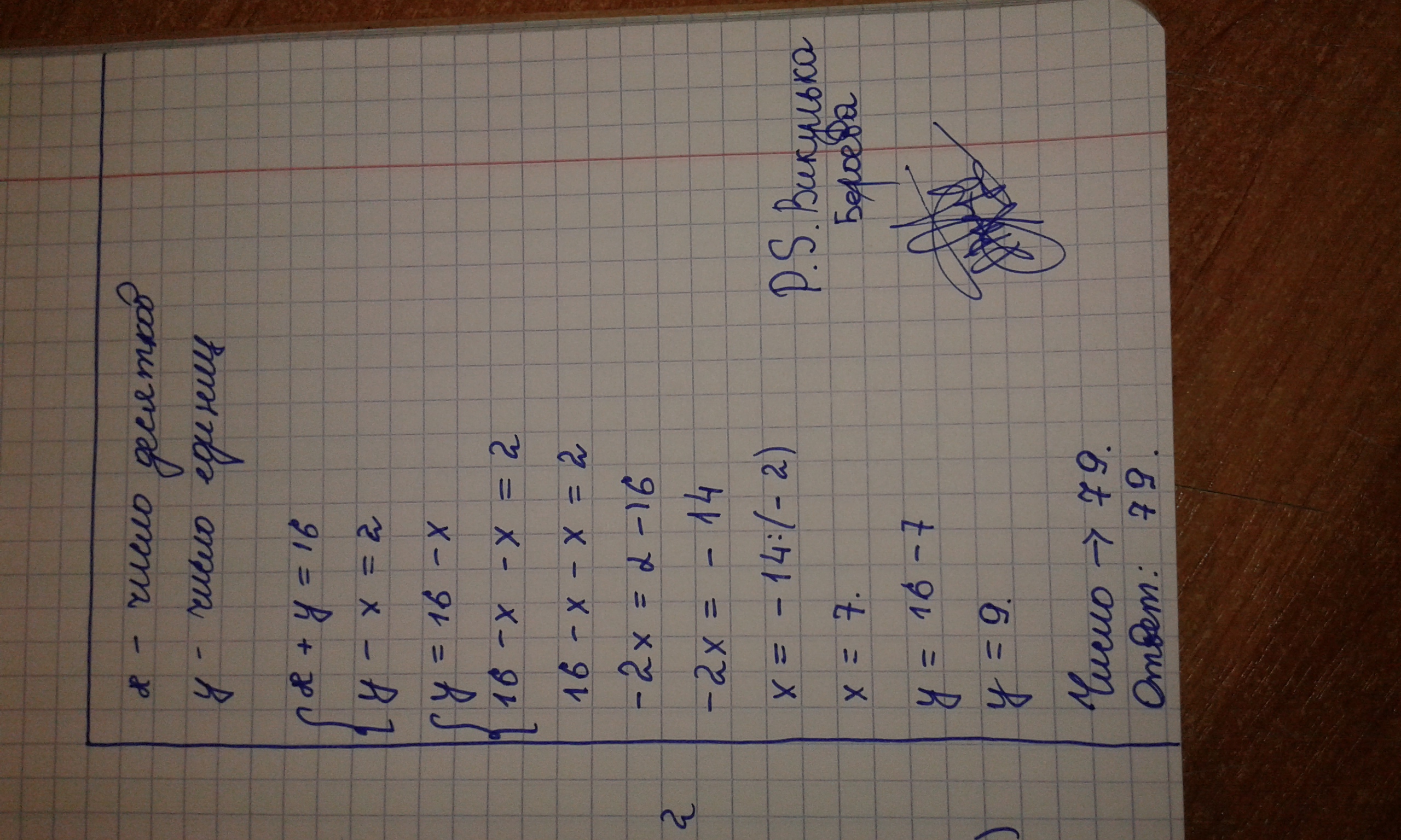 5. В двузначном натуральном числе сумма цифр равна 16. Число десятков на 2 меньше числа единиц. Найдите число.