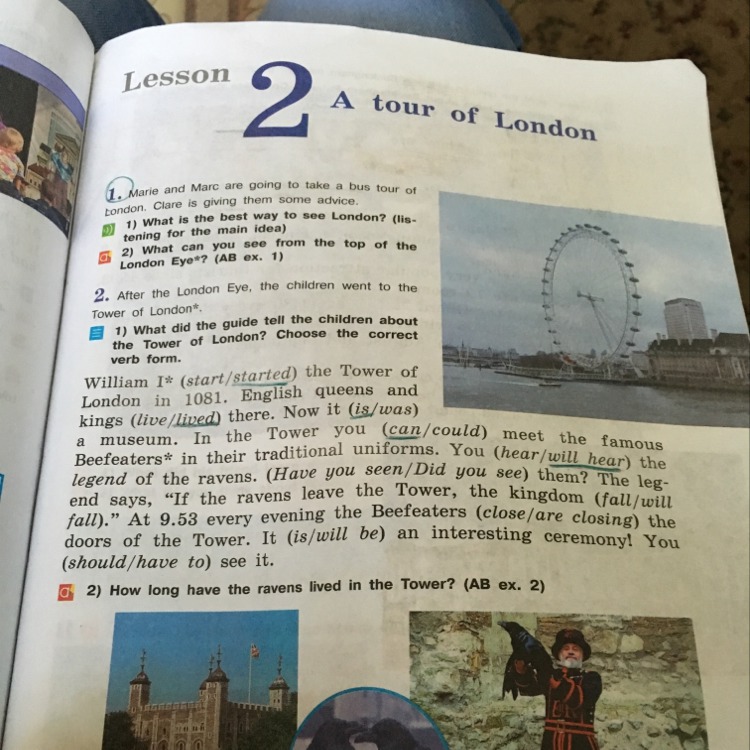 Виллиам я стал башней Лондона в 1081 году. Английские королевы и короли жили там. Сейчас это музей. В башне ты можешь встретить знаменитых Beefeaters в их традициональных костюмах(униформах). Ты услышишь легенды о воронах. Ты видел их? Эти легенды рассказывают, "если вороны покинут башню, то королевство разрушится. В 9.53 каждый вечер Beefeaters закрывают двери башни. Это интересная церемония! Ты должен увидеть это.