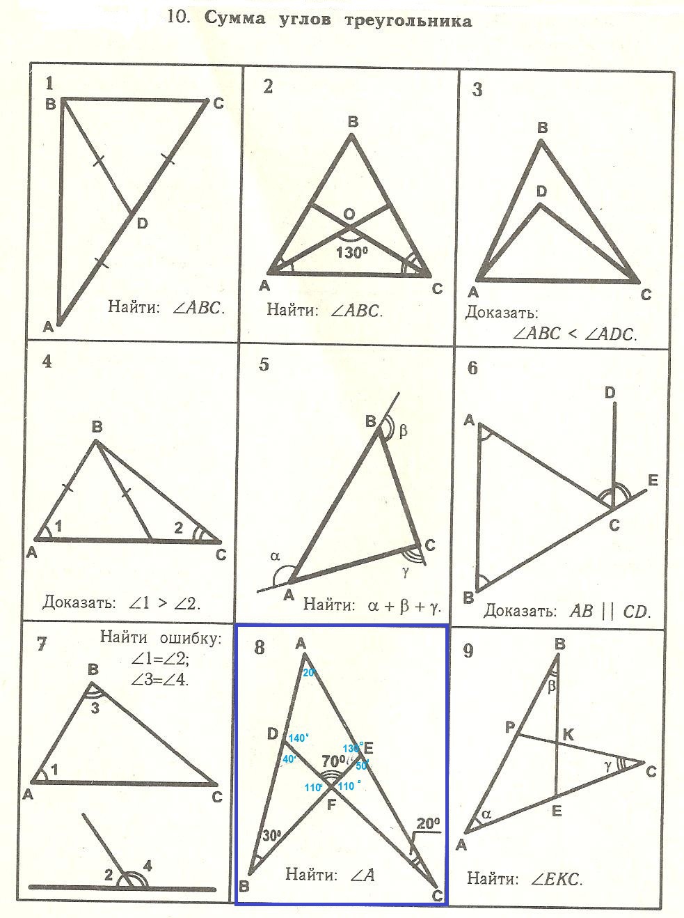 ∠ВАЕ = 180° - (130+30) = 20° ⇒∠А=20°