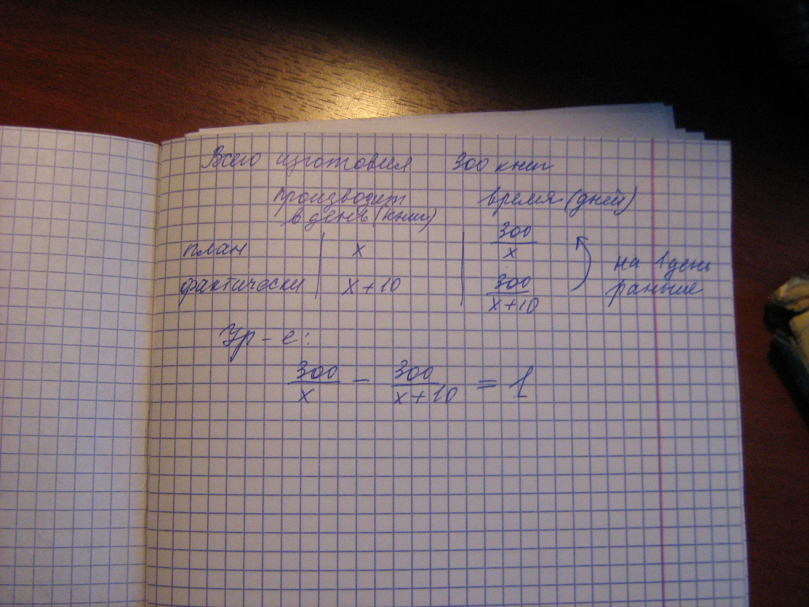 Завод получил заказ на изготовление в определённый срок 300 новых электронных книг.Изготавливая в день на 10 игр больше запланированного, завод выполнил заказ на 1 день раньше срока.Сколько электронных книг извотавливал завод за 1 день?