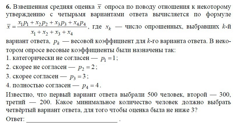 (500*1 + 300*2 + 200*3 + 4x) / (500+300+200+x) ≥ 3