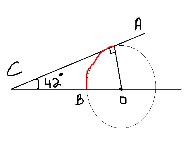 дуга AB = углу AOC = 180-90-42 = 48 градусов