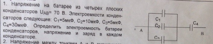 Суммарная ёмкость конденсаторов С1, С2, С3 обозначим С123=С1+С2+С3=5+10+5=20 мкФ. Ёмкость последовательно включённого С4 и С123 будет Сит=С123*С4/(С123+С4)=.12 мкФ.