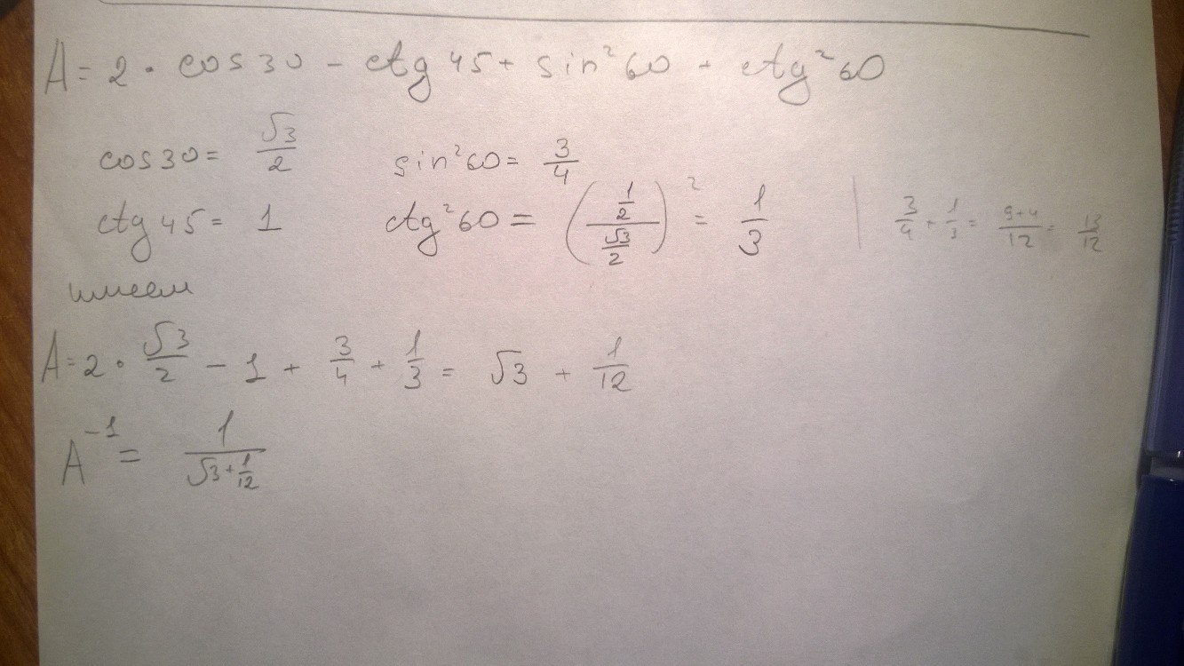 =2*√3/2-1+(√3/2)²+(√3/3)²=√3-1+3/4+3/9 и посчитать