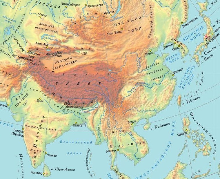 1)Тань-Шань 2)Памир 3)Тибет 4)Гималаи