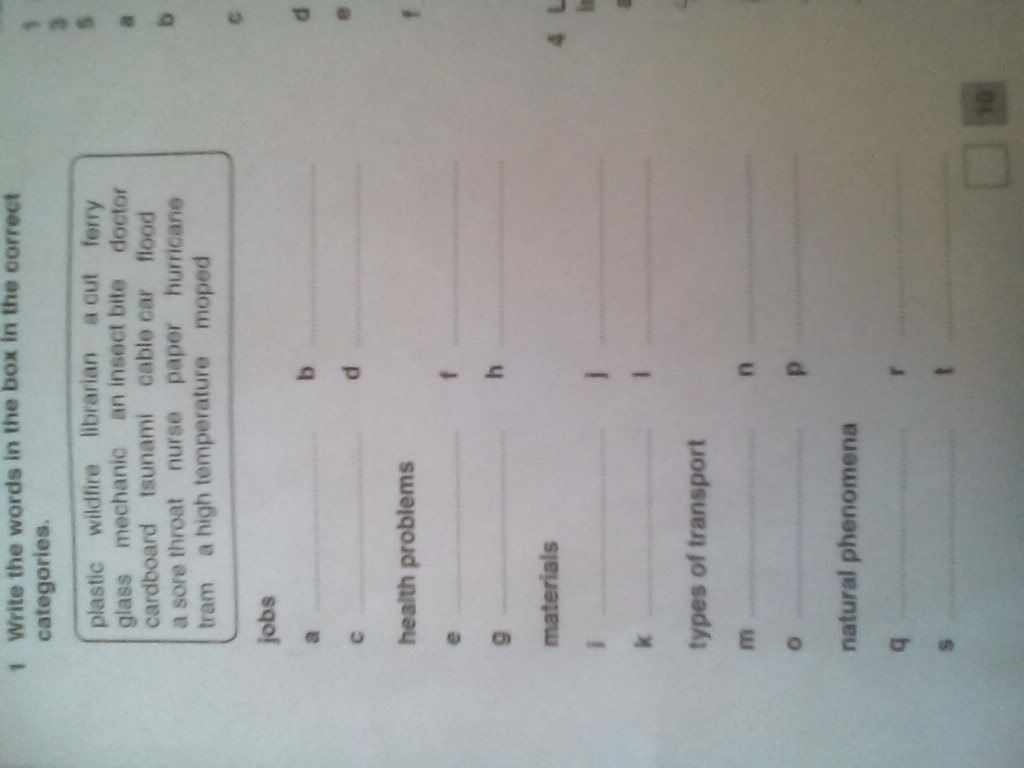 Health problems: high temperature, a sore throat, a cut, an insect bite