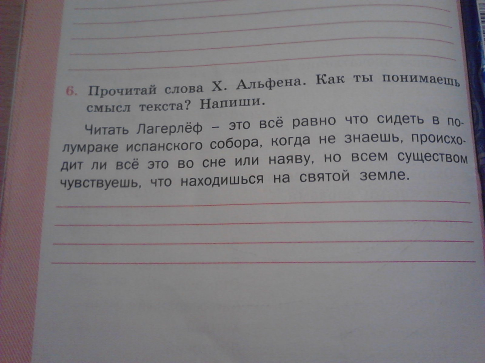 Прочитав эти строки я понимаю что смысл в том что, читав Лагерлёв ты очутился в другой паралельности. В испанском соборе и ты понимаешь что там, что происходит. Всё как будто наяву. Ты видешь всё что читаешь, живёшь там. Ты в паралельности...