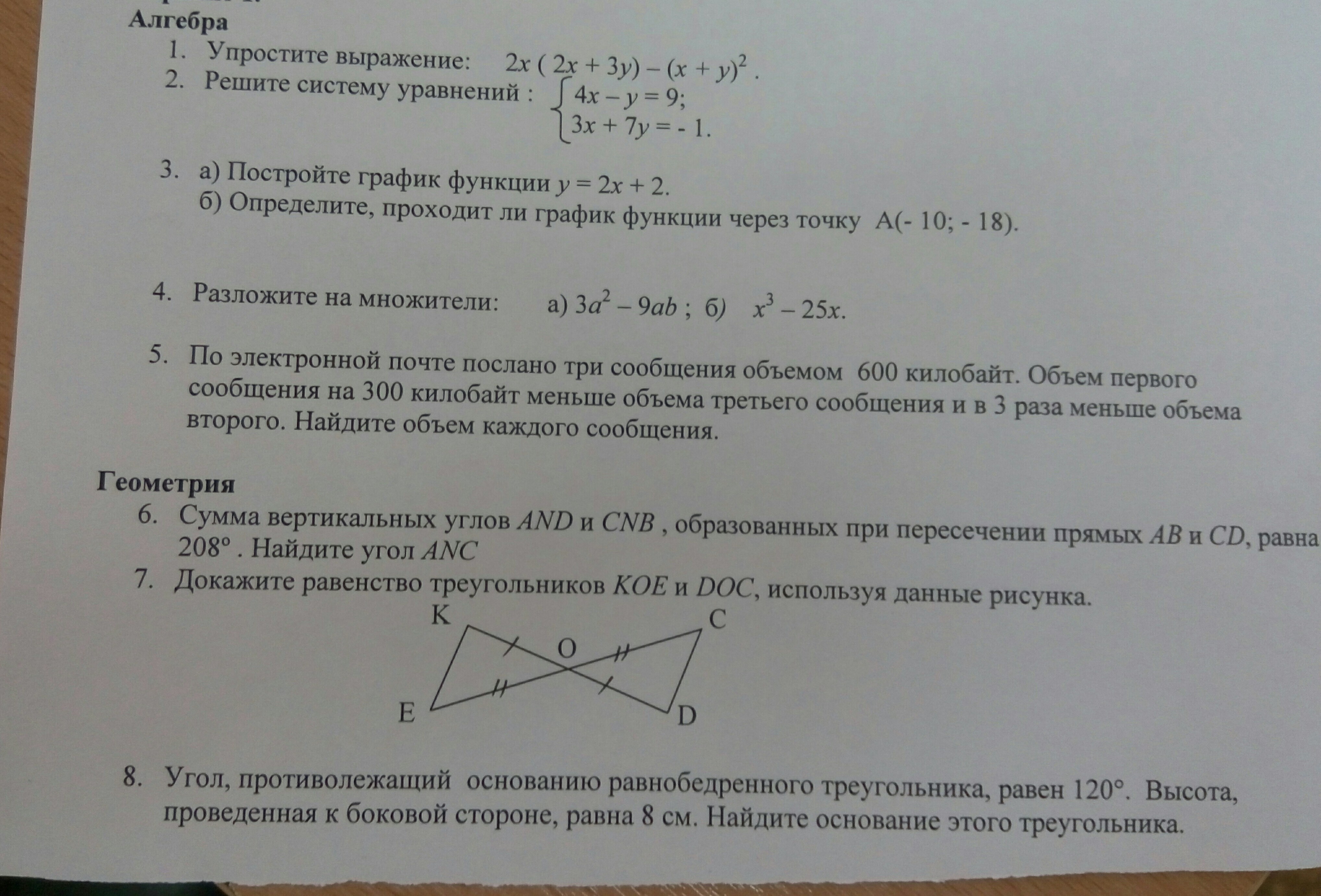 пусть х килобайт объем 1 сообщения, тогда 300+х килобайт-объем 3 сообщения, 3х килобайт- объем 2 сообщения. 3 сообщения объемом 600 килобайт
