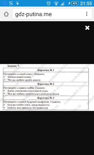 1 карточка .1 задание.There are four people in my family: my father, my mother, my little brother and me. My father is the tallest member of our family. He is 185 centimeters tall. He is strong and broad-shouldered. My father has got short fair hair and blue eyes. He wears a moustache. He is quite light-skinned.