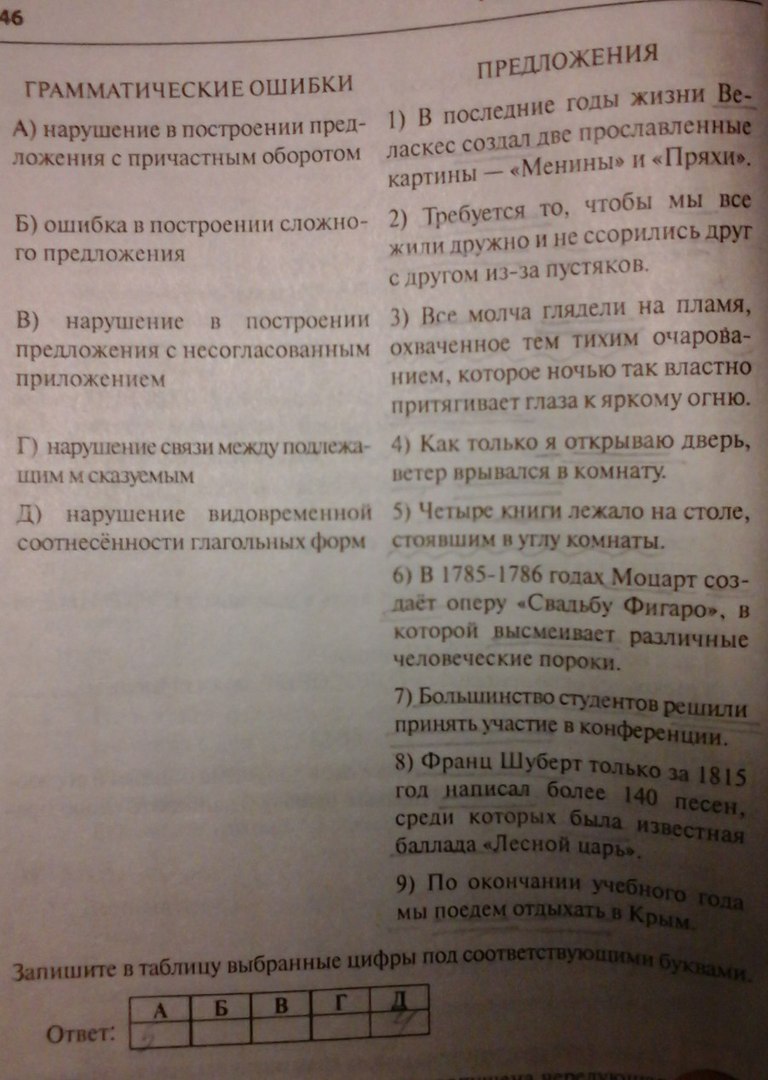 Установите соответствие между грамматическими ошибками и предложениями, в которых они допущены: к каждой позиции первого столбца подберите соответствующую позицию из второго столбца.