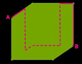 Муха ползает по поверхности куба вдоль красной линии от точки A к точке B .