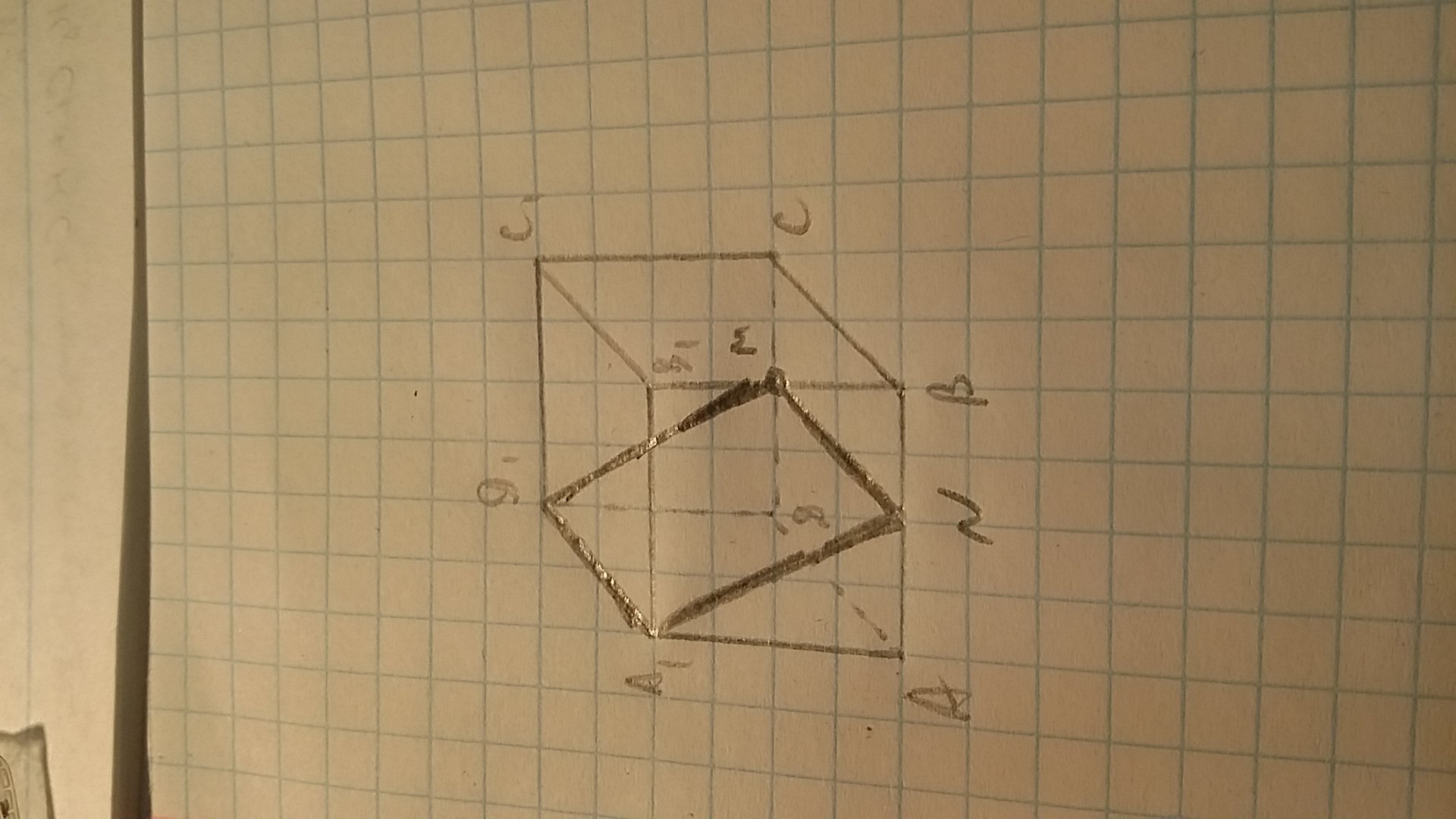 АВСД АВСД-куб с ребром 4 см . Постройте сечение куба плоскостью, проходящей через точки А,Д и М-середина ребра ДС